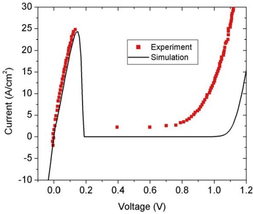 通过仿真计算可得到能带图、IV曲线、IQE、Power曲线、载流子分布图、辐射复合率、电场分布图、子带分布等各种数据图像,借助仿真数据分析器件物理机制。 结果展示 半导体激光器模拟